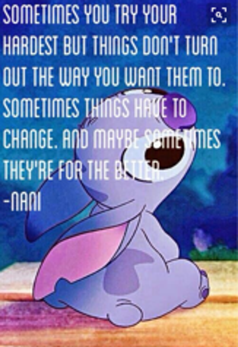 Yes, I did use a Disney quote. I know it's childish, but I think that Nani makes a good point. Sometimes you can try your hardest but things just do not go your way. However, more often than not, change is for the better.