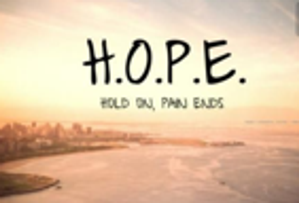 Hope. I chose this as the last one because that's all you really need, hope. As long as a person has hope, anything can happen. As long as you hold on, you are going to make it through anything that comes at you because eventually, the pain does end.