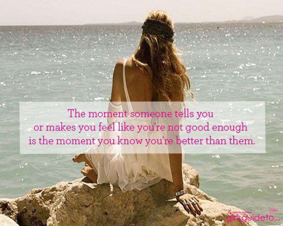 I have lived a long portion of my life feeling like I am neither good enough, nor worthy enough for any of the great feelings and experiences that life has to offer. I accepted the negative comments that people have made about me as fact and thought of harsh criticism as something that I deserve. In fact, I even started to join in. I let the negative opinions of other form negative opinions of myself so much so to where it feels like my personal thoughts of myself are just the broken records of the voices who have made me feel less than over the years repeating the same horrible things over and over again. Though I still have these feelings, I've recently decided that against my personal views of myself that I am no longer going to stay content in feeling this way. I don't think that I am the only one who has ever felt this way, so this is for you: six quotes for anyone who has ever felt like they weren't good enough.