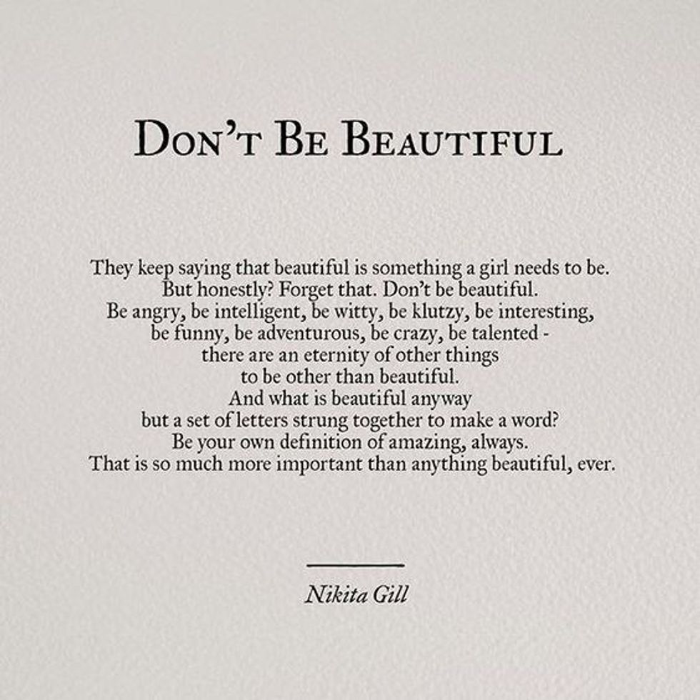 You are so much more than just beautiful. You are intelligent and talented and kind and loving and there are so many other things to be than just beautiful.