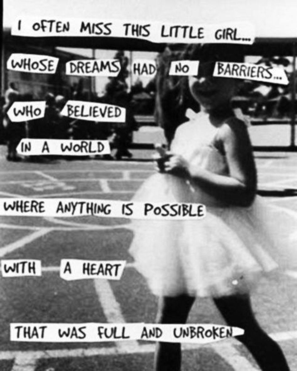You can always be that little girl, don't let anyone think you shouldn't chase your dreams. Always Always Always do what you love and never forget that little girl who believed she could do anything, because you can do anything you set your mind to if you want it bad enough.