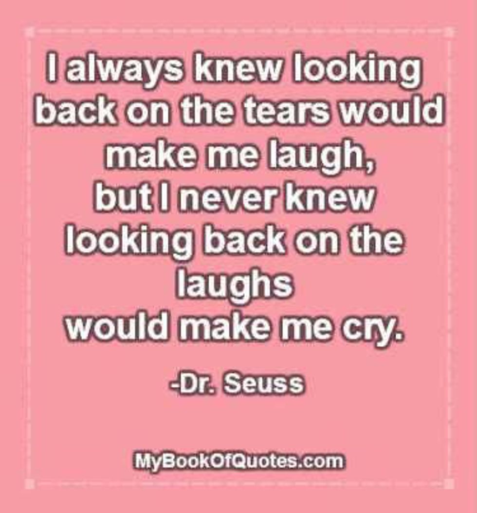 "I always knew looking back on the tears would make me laugh, but I never knew looking back in the laughs would make me cry" - Dr. Seus
