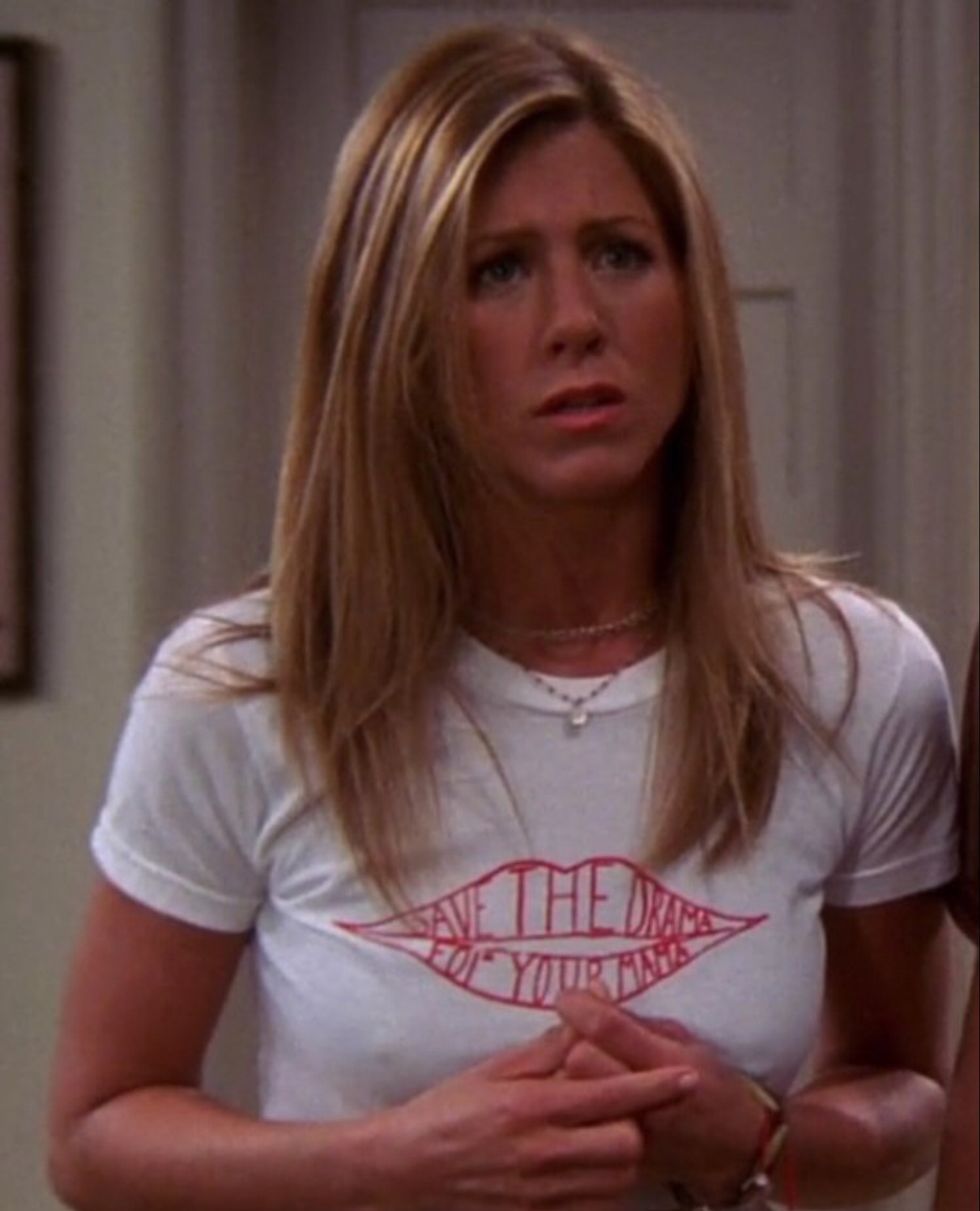 Most people remember the "Friends" character's iconic hair, but I remember her iconic outfits. Recently, I read a Cosmopolitan article highlighting some of Rachel Green's style (you can find it here: http://www.cosmopolitan.com/style-beauty/fashion/n...). Personally, I was disappointed in the article because as I was reading, several outfits came to mind that did not end up getting featured. I decided to dig deep and create my own list of favorite Rachel looks.