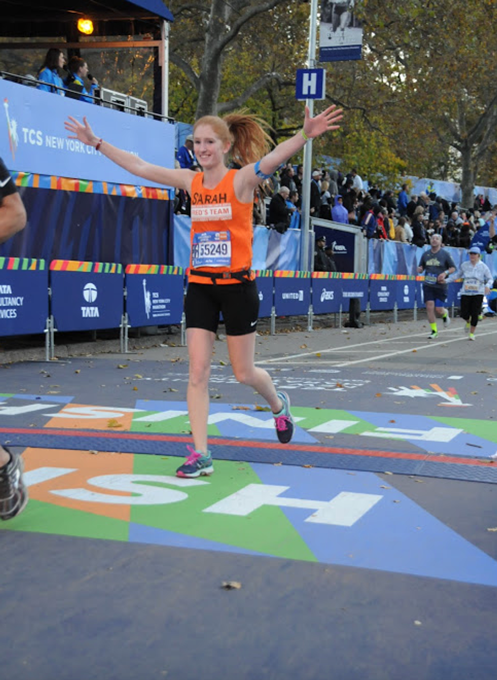 Her story started with a diagnosis. It peaked when Sarah crossed the finish line in Central Park that fall afternoon. And the story goes on.