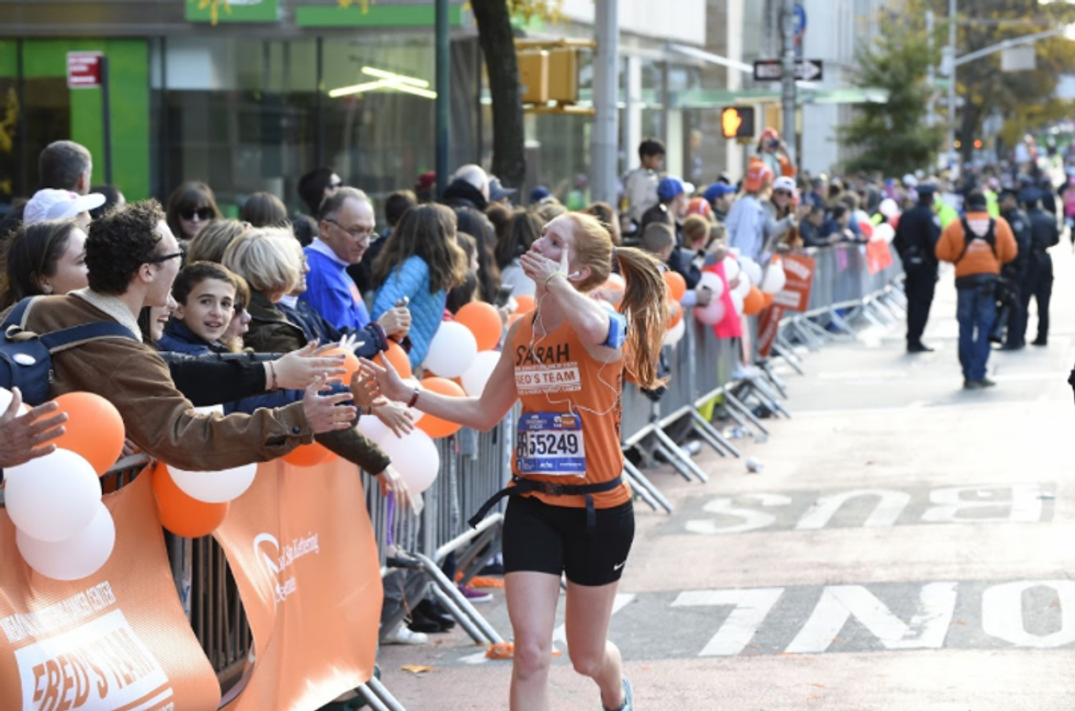 Mile 17 was the magic number. It marked the best part of the marathon for Sarah — right at mile 17, on 68th street, was one of the Memorial Sloan Kettering buildings. And the promise of that one moment — passing the place responsible for her recovery — kept her going.