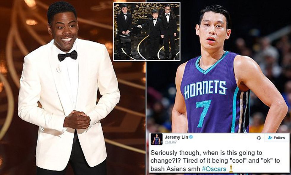 Rock made a joke about Asian Americans and Jewish Americans as being good at math and brought out three young children. Rock then said: "If anybody is upset about that joke, just tweet about it on your phone, which was also made by these kids." This created an outpouring of rage and many celebrities quickly took to Twitter to slam him for it. Later however, Cohen made another joke using Asian Americans implying typical stereotypes used against their culture: "How come there is no Oscar for those hard working little yellow people with tiny dongs... you know? Minions." This sparked even more anger from people. The Internet is outraged and quick to judge these jokes at face value; as racist jokes meant to make fun of Asian Americans. But, a problem with this jump to conclusion, is that we start to ignore the real impact these jokes made.