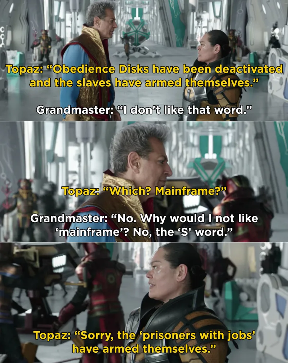 Korg was the most endearing character in Ragnarok, and this line showcases both his heart and stupidity.