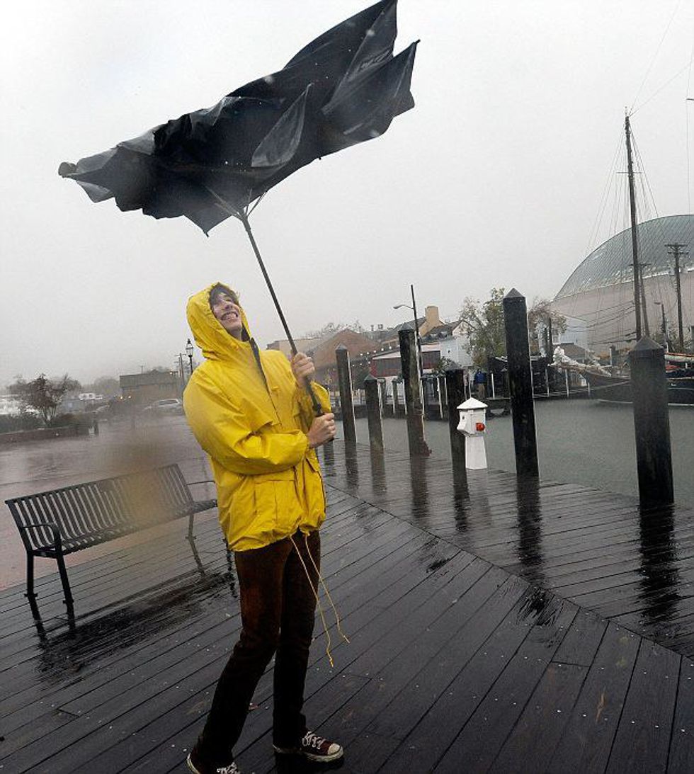 When your umbrella keeps flipping over, it becomes pointless to try to fix it. Then you proceed start a new fashion where strutting a flipped umbrella is the new fashion.