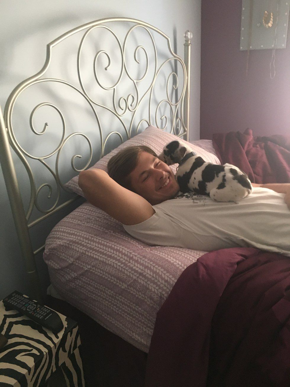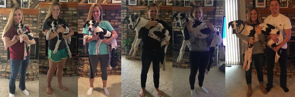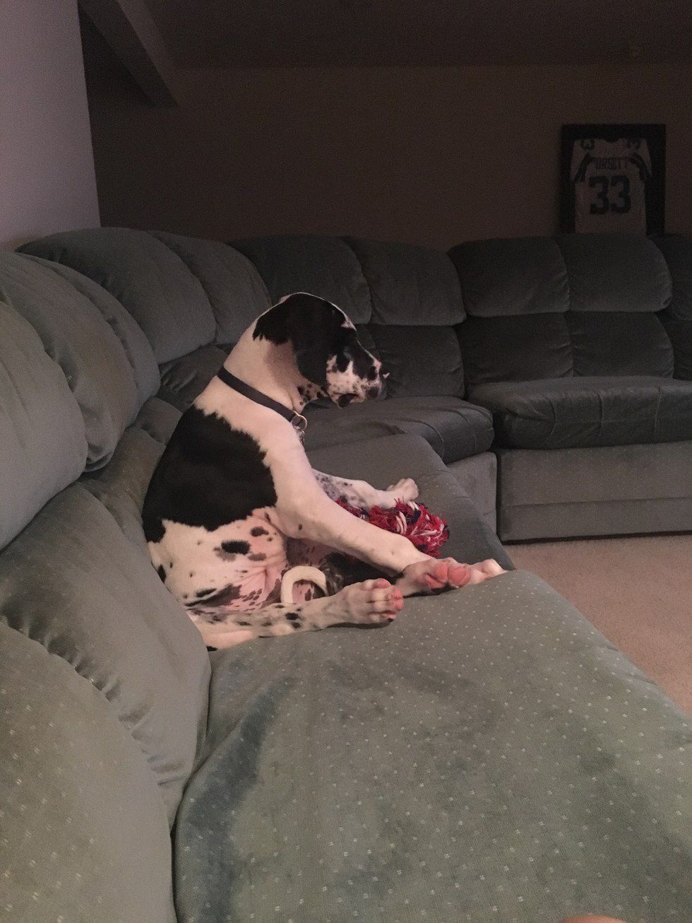 Raising a puppy has definitely pushed my patience to a whole new level. They eat a lot, they poop a lot, and they are curious about everything. While puppies are adorable, they are also a lot more work than I had anticipated. Over the summer, I got a Great Dane puppy from a local litter. His name became Buster shortly after picking him out because of his markings. This is Buster's story: