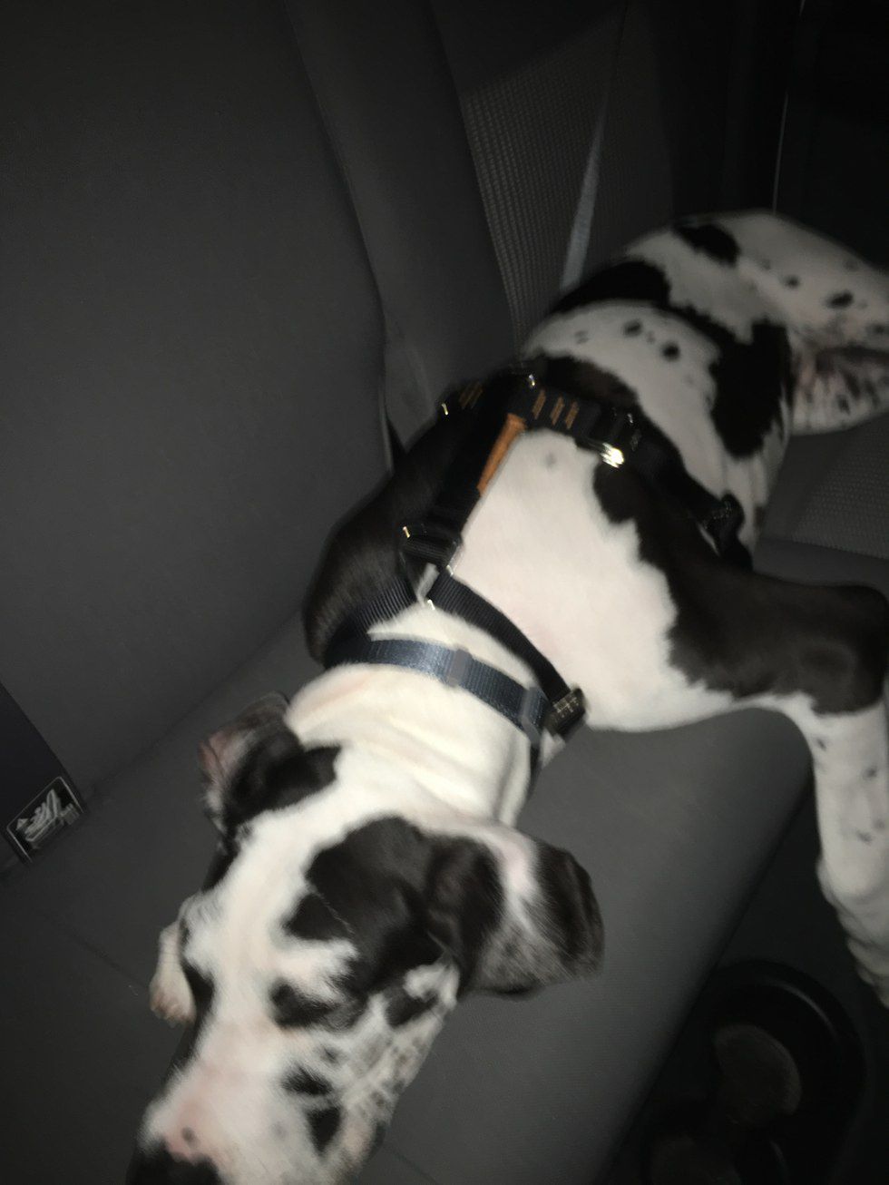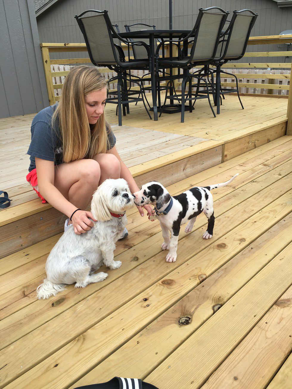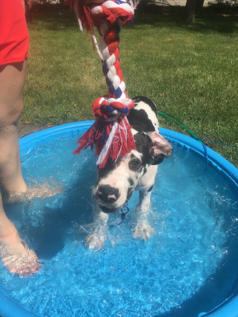 Day 30: One month down and no major mishaps! Buster met our friend’s Great Dane, Gunner. They played the whole time we were over there. Buster even chased Gunner around for a while.