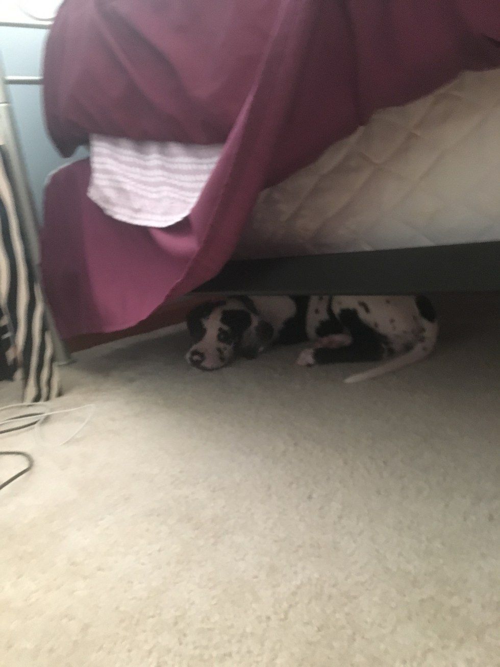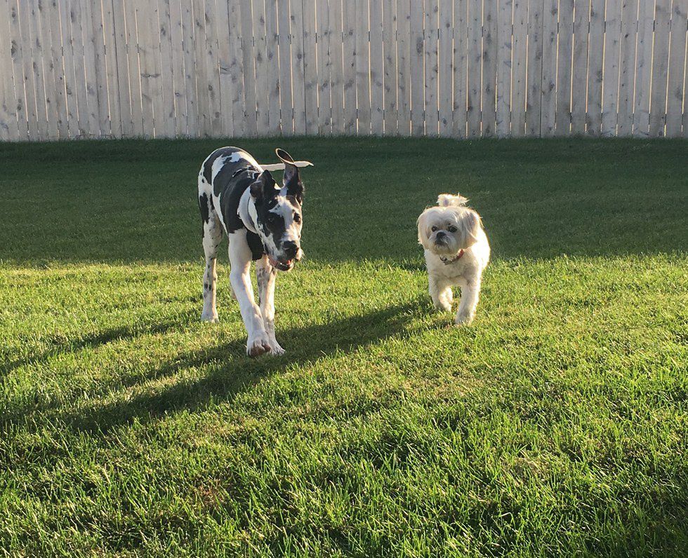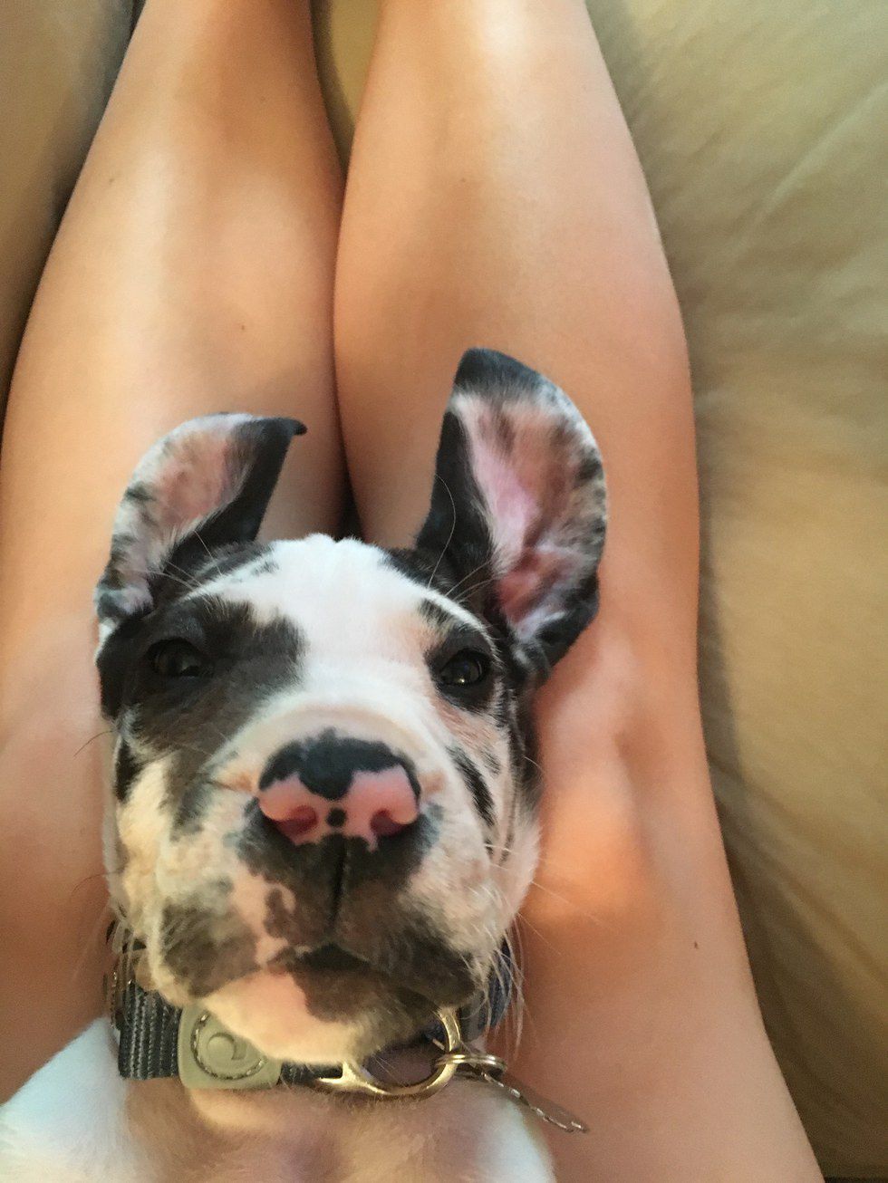 Day 30: One month down and no major mishaps! Buster met our friend’s Great Dane, Gunner. They played the whole time we were over there. Buster even chased Gunner around for a while.