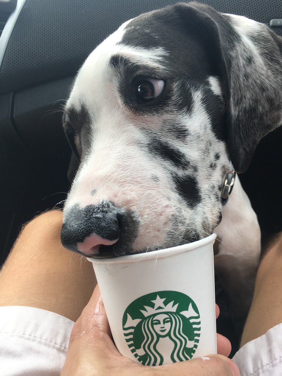 Day 57: After puppy training, we swung by Starbucks and Buster ate his first ever puppuccino. He licked the whole cup clean.