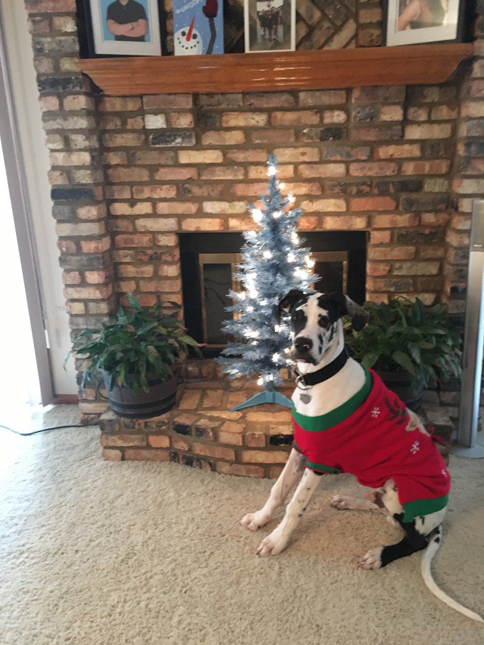 Day 177: Buster is enjoying all things Christmas: the snow, his sweater, and the food (duh). He is 7 months old and now weighs 87 pounds.