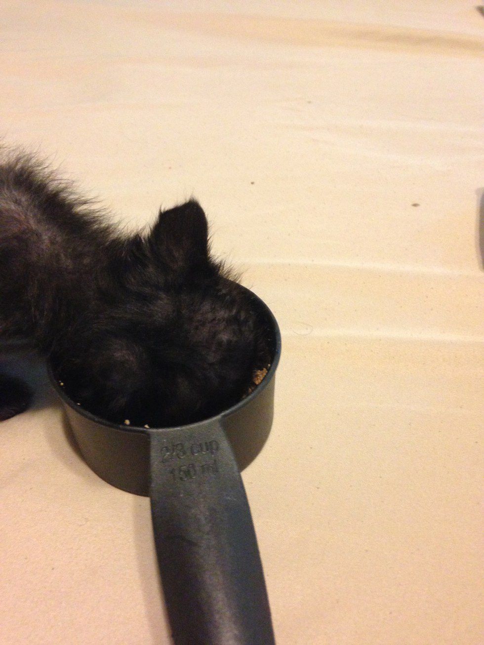 Just like a mother cat, we had to be very punctual with feeding Diamond. This was the roughest part being that it required we feed her every three to four hours. This was no problem during the summer because we didn’t have school! Soon school started back and the rough part started! My mom had to drive back home on her 30-minute lunch break to feed Diamond and then rush back to work. Not too far into the school year, Diamond started eating canned food which made our lives so much easier!