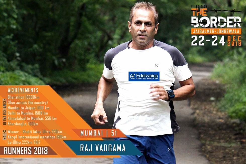 Besides running this race, Vadgama has also undertaken the "Bharathon 10000, a unique ultramarathon connecting the four corners of India," running from August 15, 2014 (Independence Day) to January 26, 2015 (Republic Day). The run was 9,902km long and took 165 days, going about 60km per day, to complete.
