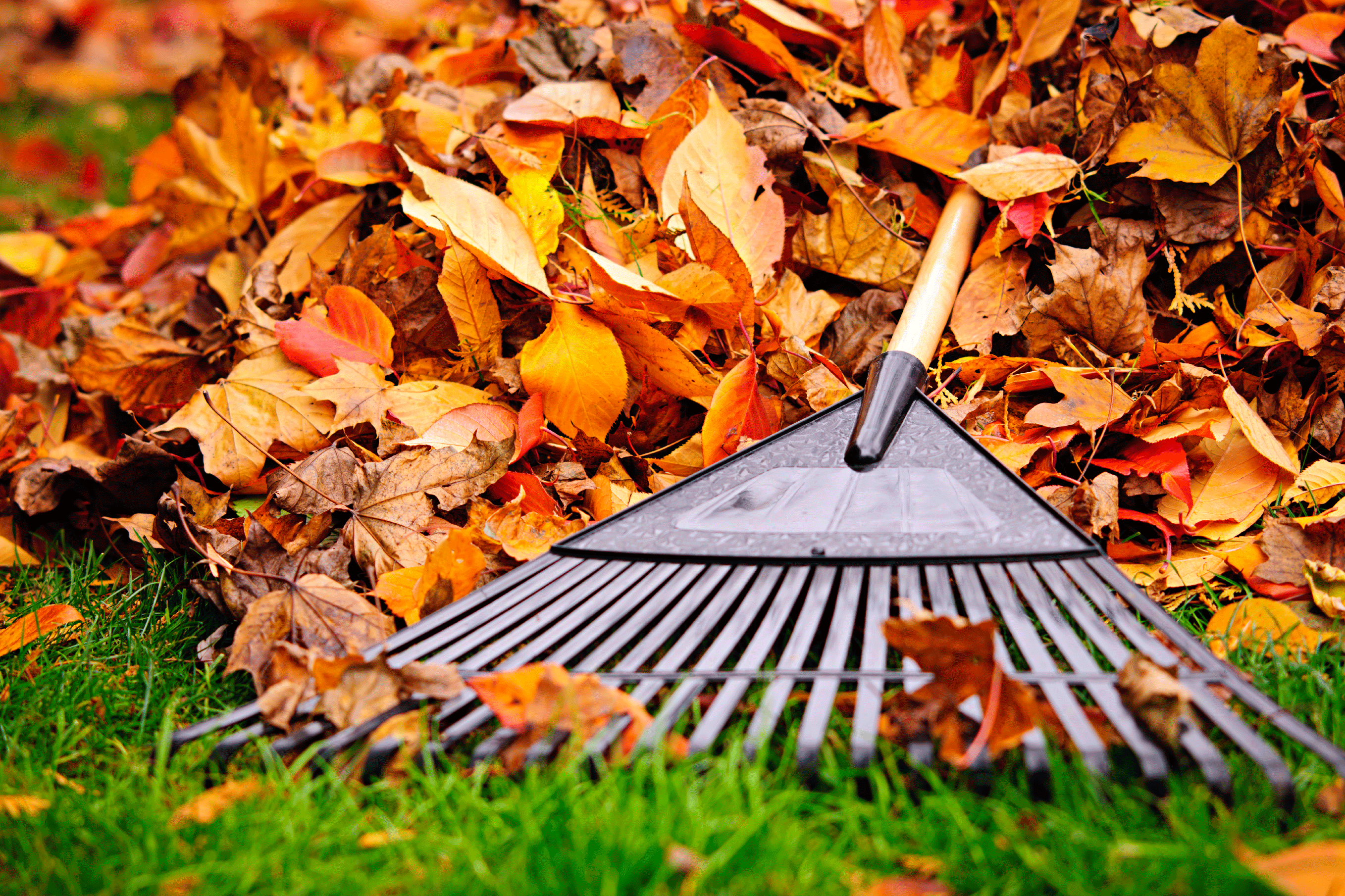The trees have gone dormant for the season. and the leaves fall. But they're scattered all across the front and back lawns. That's a mess for my grandparents. So my dad and I go outside to rake them on Friday afternoon after lunch.