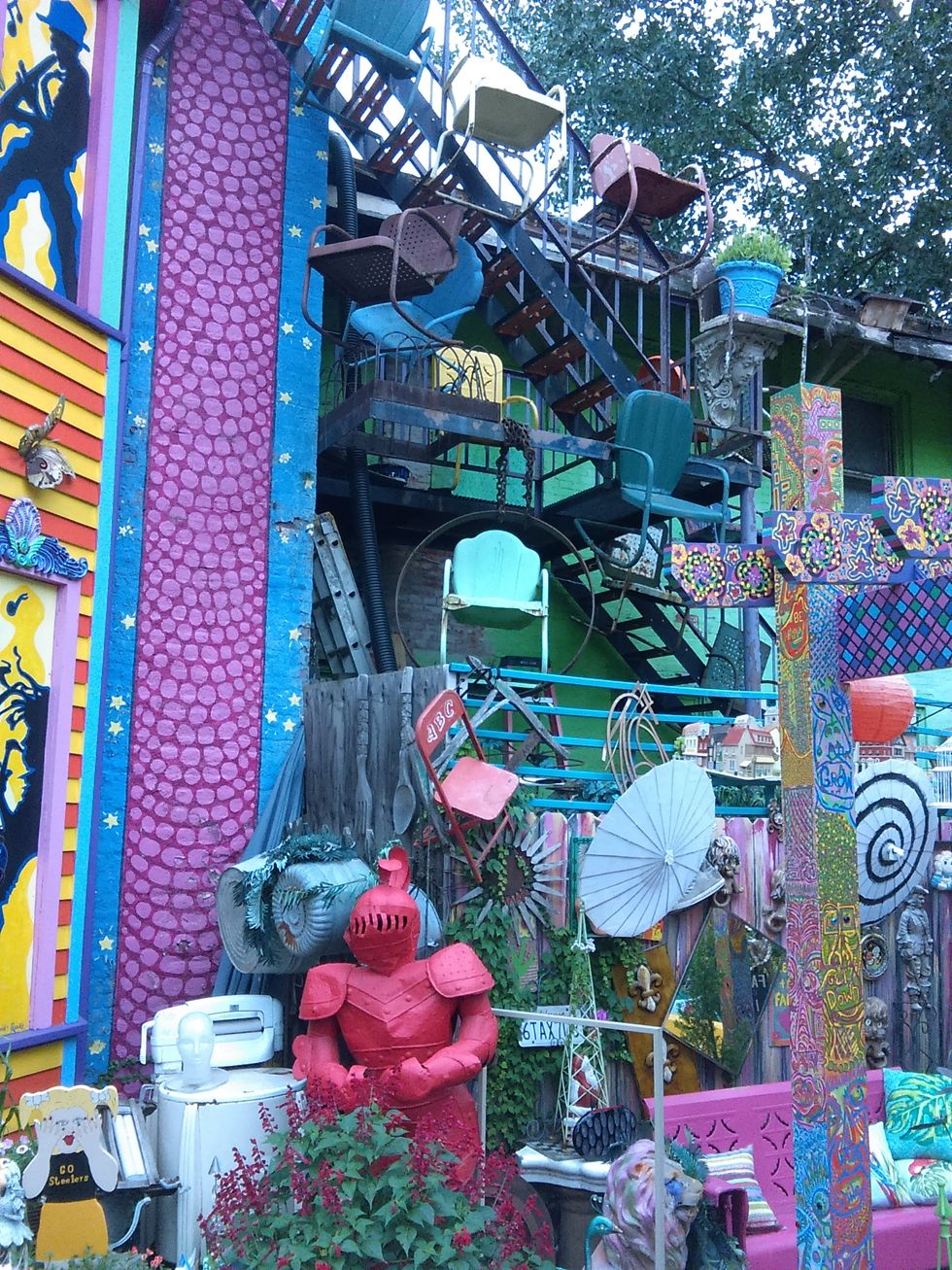 Nestled in the Mexican War Streets district, Randyland is impossible to miss. When we pulled up, the brightly colored corner row home greeted us like a splash of Technicolor love. Even visiting on an overcast day, 1501 Arch Street is a ray of sunshine. As we put the car away and walked towards the open gates, I felt tears of joy welling up in my eyes. All the love, hope, happiness, positivism, determination, and vision that Randy Gilson has sown into his land emanates from the place like an intoxicating mist. Of course, having just come from a check up with my oncology surgeon, some might say that my emotions had already been stirred.