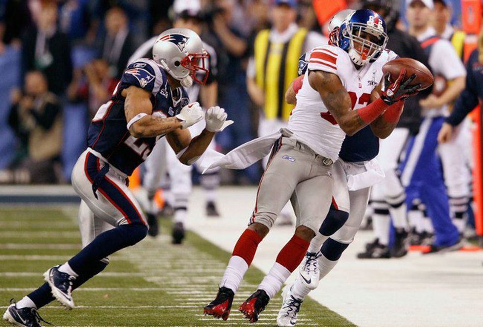 The second Super Bowl match-up between the Giants and the Patriots was not as memorable as their first meeting, but the results were similar: The Giants pulled off the upset over the Patriots with a circus catch. Before Mario Manningham made the catch however, the Patriots blew an opportunity to put the game away when Tom Brady failed to connect to a wide open Wes Welker. The pass was a little too high for Welker to hold on and he dropped the pass, allowing New York to snatch away the Lomardi trophy again by inches.