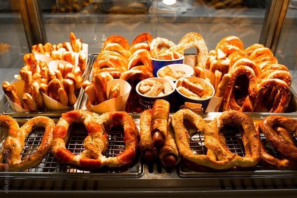 You ever been to a mall? There's probably an Auntie Anne's there. It's the pretzel place that is always there, smelling good. They have variations of pretzels such as pretzel dogs and pretzel nuggets and lemonade to wash it all down. A great snack. Reminds me of simpler times.