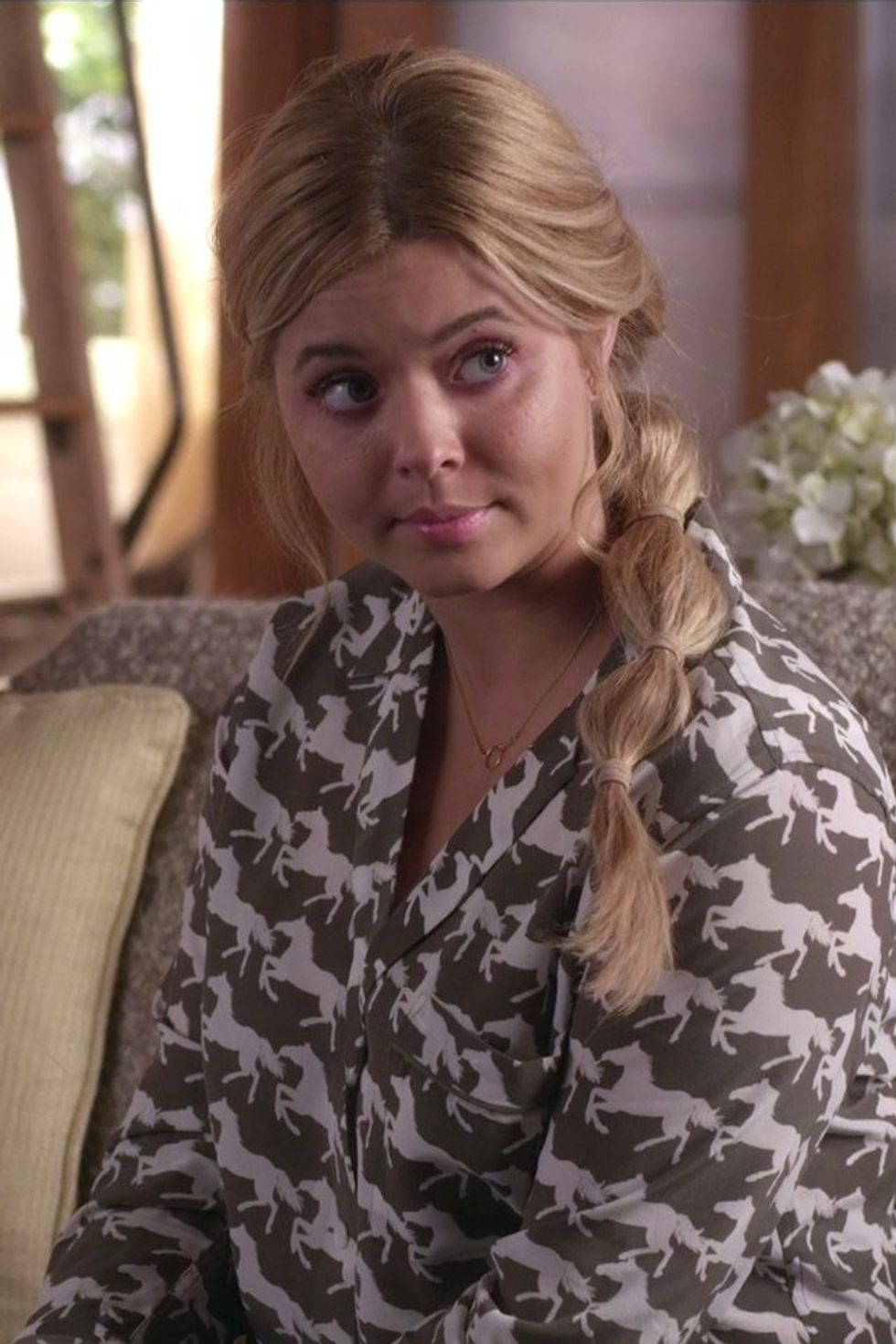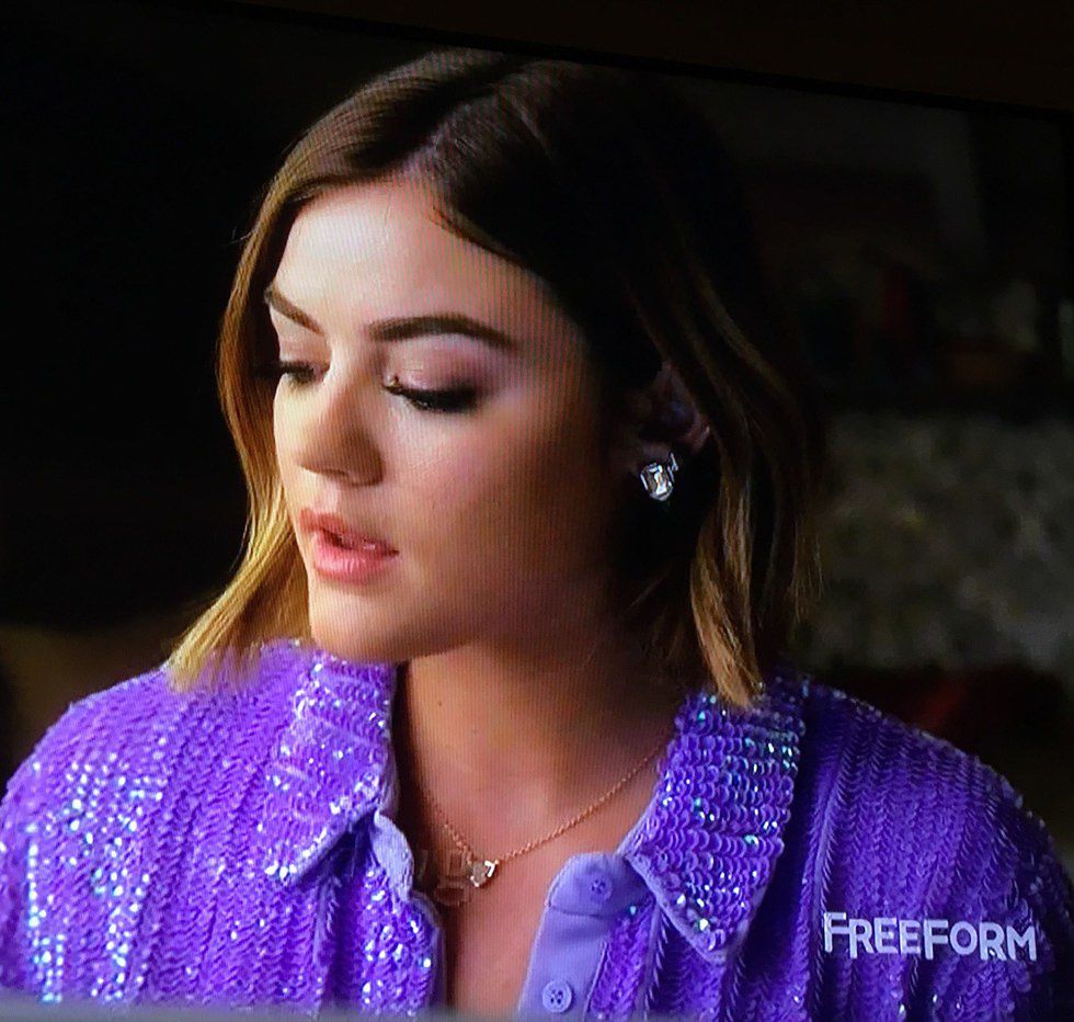 How mad do you think Aria would be that her purple shirt is not the most memorably ridiculous one on this list? That honor instead goes to Caleb who rocked this strangely printed button-up the morning after he wakes up at Spencer's. Maybe he borrowed it from her?