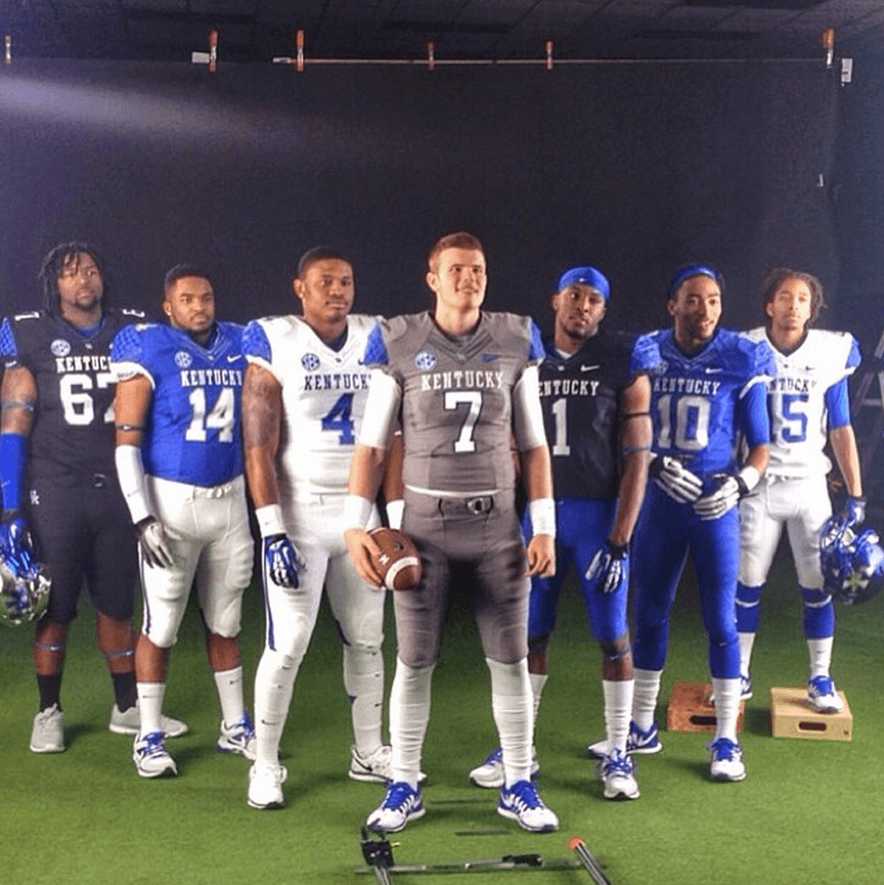 The Wildcats incorporate in grey, blue, black, and white with chrome helmets