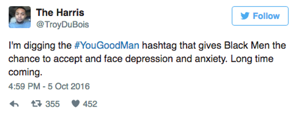 Although Cudi isn’t the first celebrity to openly discuss depression nor will he be the last, he does represent a key underrepresented demographic: the black male in America. His exit from social media early last week sparked a necessary conversation with tweets pouring in to talk about mental health, particularly for Black men, with the trending question #YouGoodMan.