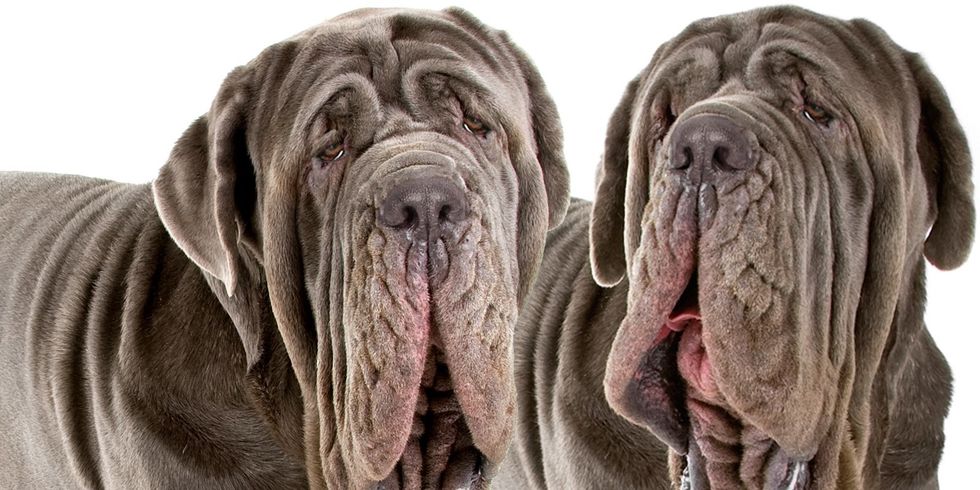 The Neapolitan Mastiff has a very formidable appearance, so much so that it was the breed of dog chosen for "Fang" in Harry Potter. The dog has loose skin especially in the head region that creates folds and wrinkles in the face. Owners must be wary though, as the dogs require extra cleaning between the wrinkles in order to prevent infection.