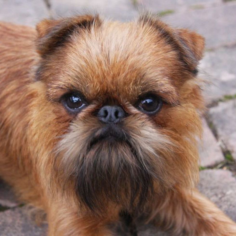 The Brussels Griffon is a spunky toy dog breed that originated in Brussels. The breed is known for being independent and having an inquisitive nature, as well as being a good watchdog.