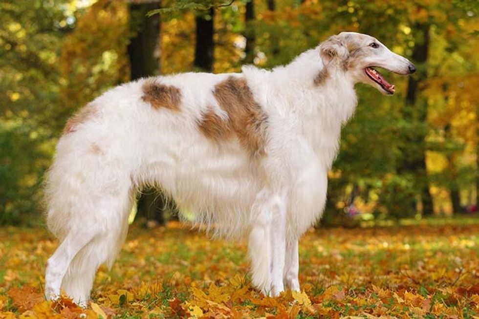 Last but not last, the Borzoi. This sight hound can weigh up to 105 pounds when fully grown and is similar in shape to a Greyhound. The aristocratic looking dog is also known as the "Russian Wolfhound" based on its historical significance in Russia.