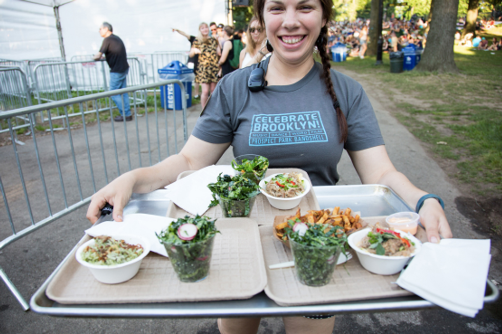 The Bandshell partners with local purveyors and organizations to provide great food and handcrafted goods. For food I ate from The Farm on Adderley. It was made quickly, the customer service was great, and the food was perfectly seasoned. I had a delicious meal--- I took the 3 for $18 deal and had parmesan and garlic fries, a kale salad, and lamb over rice. *They also provide service from other sponsors such as The Good Batch (a Brooklyn based pastry company) and Etsy (for handcrafted goods). For 21+ viewers, they serve alcohol all night long.