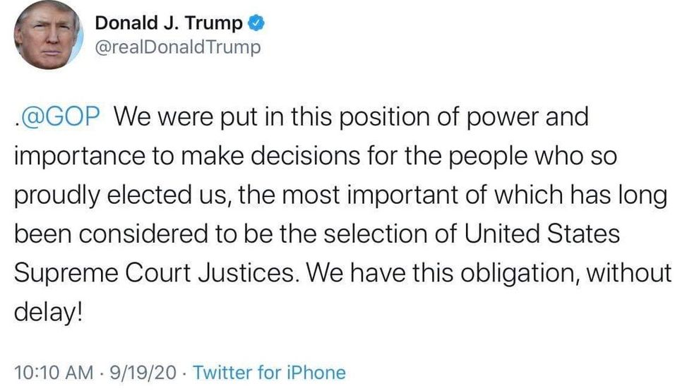Less than 12 hours after tweeting about the death of RBG, Trump took to Twitter again, but this time, it was about finding her replacement.