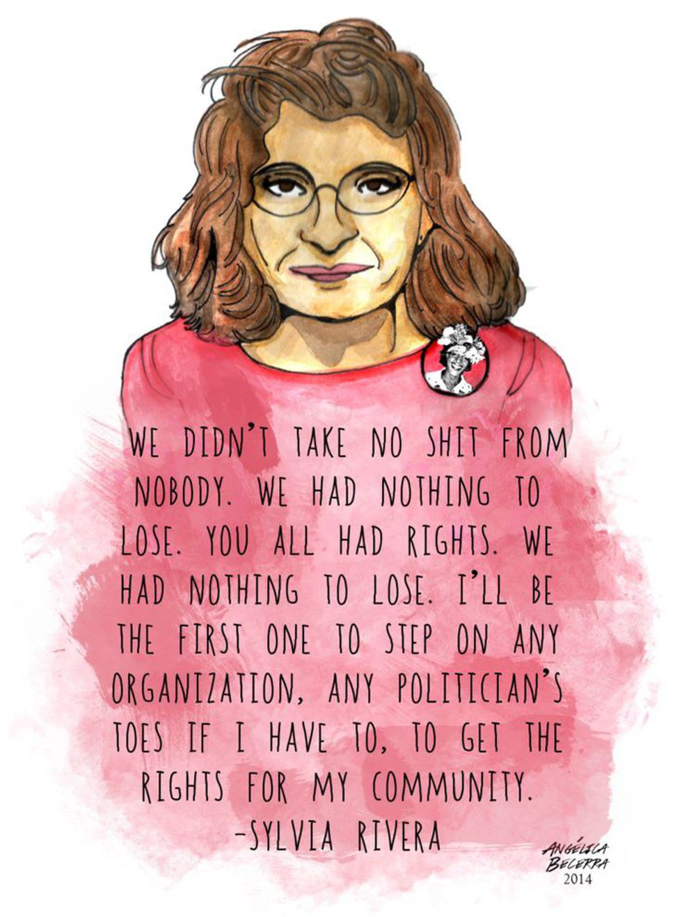 In honor of pride month, as well as President Obama naming the Stonewall Inn the first LGBT monument, talking about Sylvia Rivera seems to be very appropriate.