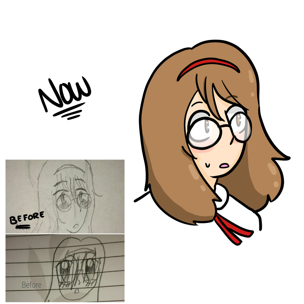 Upon redrawing these things, I started seeing how much I improved. As mentioned before, I most definitely improved in character design. But, since this is an artistic reflection, I'm only going to focus on how I improved in those areas.