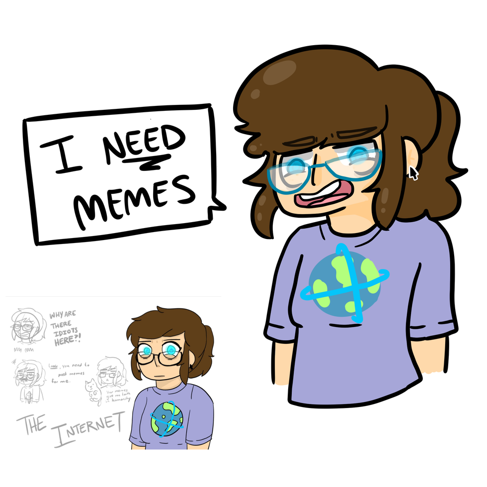 This drawing is essentially just the personification of the internet in which I planned to use in a webcomic about memes, but it kinda just died away.