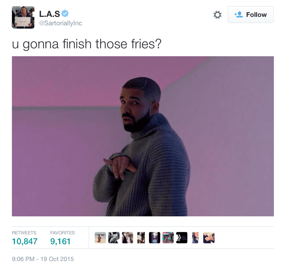 So if you don't have a vine or despise Twitter then that's weird and you should probably go invest your time right now to make one or both of these social media platforms. And if you don't have either then you probably haven't seen all these amazing Drake memes and vines. To give you some background and incite to what I'm actually rambling on about, Drake released his music video "Hotline Bling" in October. I and a lot of other people in this world are Drake fans and needless to say we were all super excited to see what this music video would look like because "Hotline Bling" is a serious jam. Quite honestly I don't think any of us were prepared for the dance moves Mr. Aubrey Graham would display.