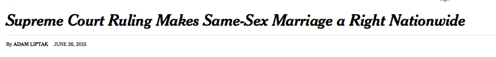 The year 2015 has made history and the message is bigger than what we could have imagined before. What we have learned is that one change can make a massive difference and spark new conversations about equal rights. We are a work in progress; this country has learned from a ton of trial and error—what we see now in headlines is a glimmer of hope for the future and the steps necessary to be taken in order to create equality. I feel that now, more than ever, we should stop seeing headlines like this: