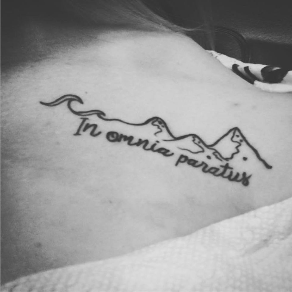 When people see the tattoo they ask me what it is. Usually, I just say it’s latin words and they go about their business without asking what the words actually mean. Above the words are mountains and waves. Why? Because life can be hard to climb and overcome like mountains or as rough and unpredictable as the sea.