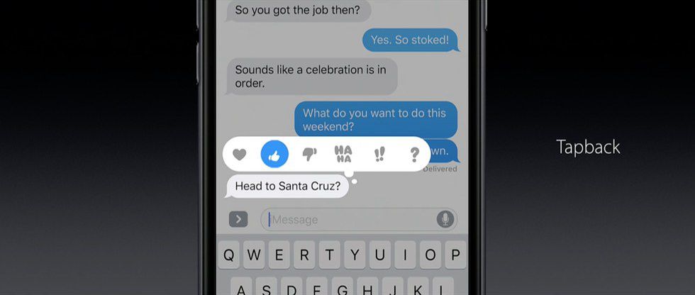 Third party apps will be available within the messages apps. This mostly mimics the stickers feature on Facebook, however it also allows you to send music and has the potential to add more features to it. Apple suggested potentially using it to request money from friends with apps like square cash or to order food.