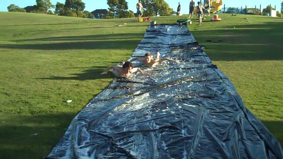 What you will need: (2-3) Large tarps, (a lot) gallons of dish soap, (1-2) hose, (1) hill