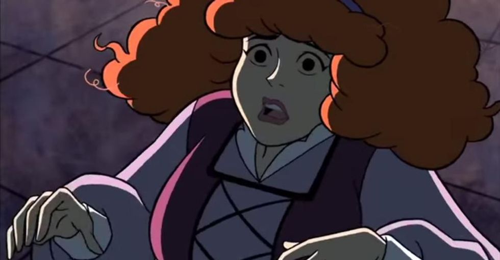 During the movie, the gang goes out to Transylvania, PA to scope out Velma's inherited castle. While there, every member of the group becomes cursed and loses whatever means the most to them. A skinny frame and good looks is what happens to be Daphne's loss- because, after all, that is obviously the most terrifying thing that could ever happen to a woman.