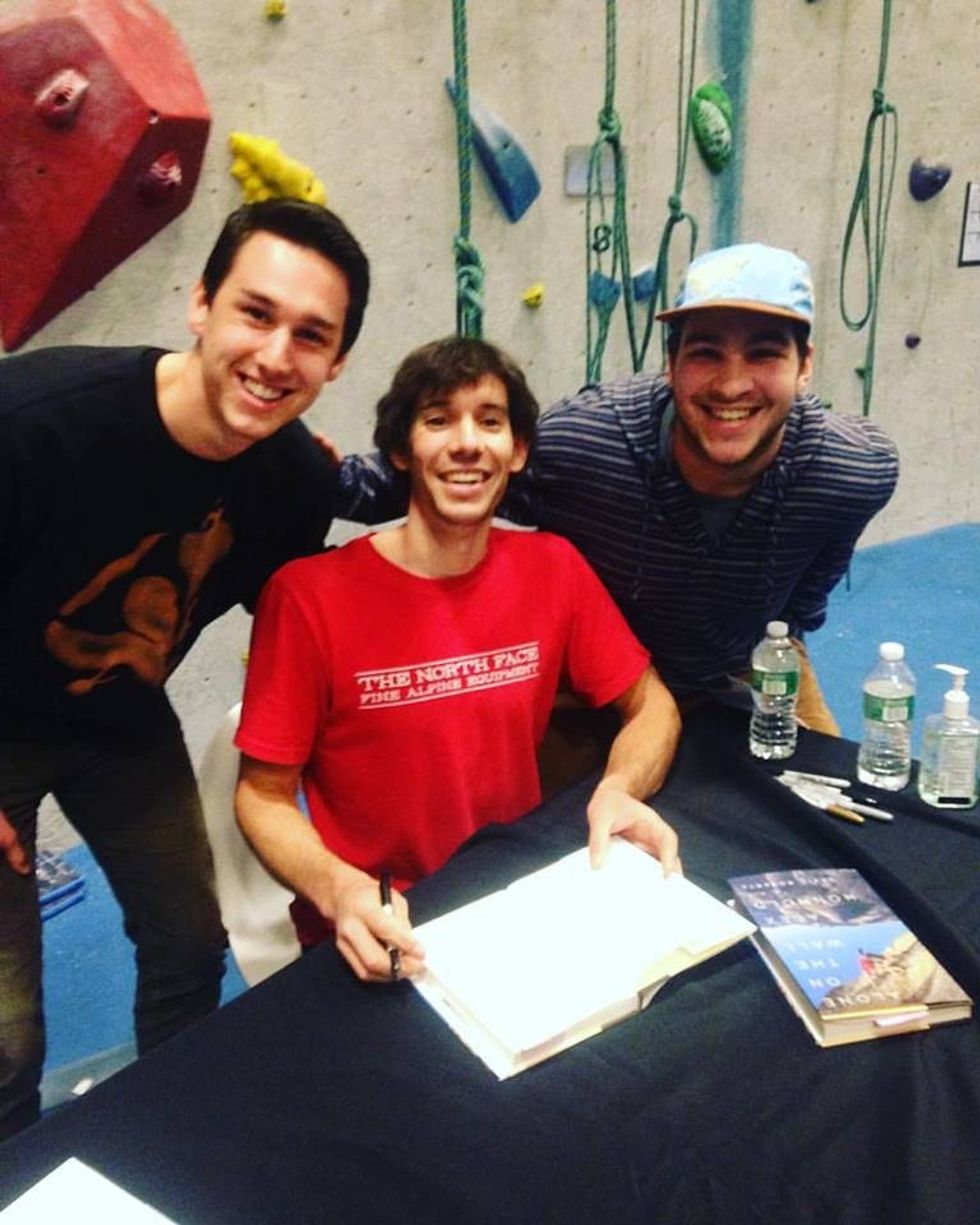 This past Friday, Nov. 13, I was very lucky to have reserved spots for myself and Andrew Ptacek (Springfield College Alumni '15) to go see and hear a panel Honnold gave. The location was out in Watertown (right on the outskirts of Boston). There is a climbing gym chain called Central Rock. They have many branches all over Massachusetts And Connecticut. This branch was in Watertown and they were hosting Honnold to give a small talk and have a book signing for his new book, " Alone On The Wall" he just published this fall.