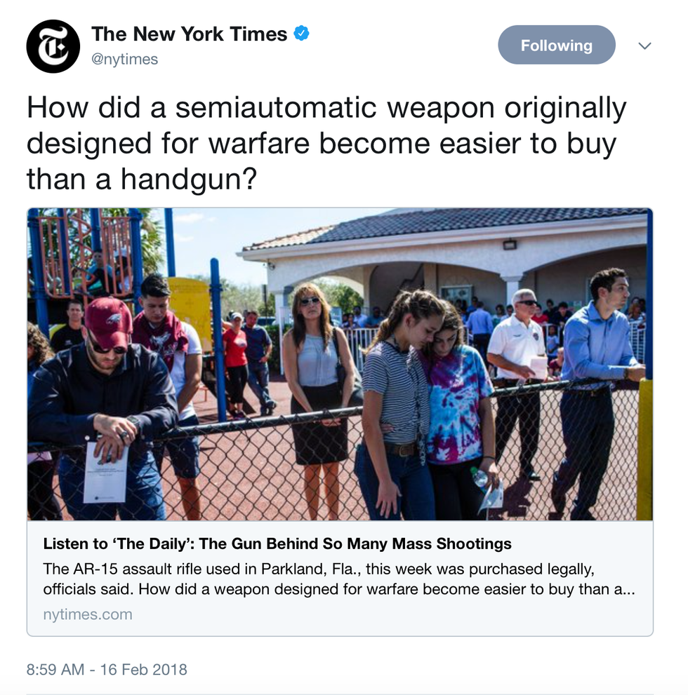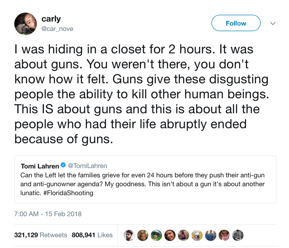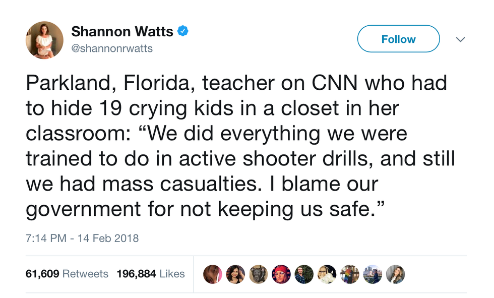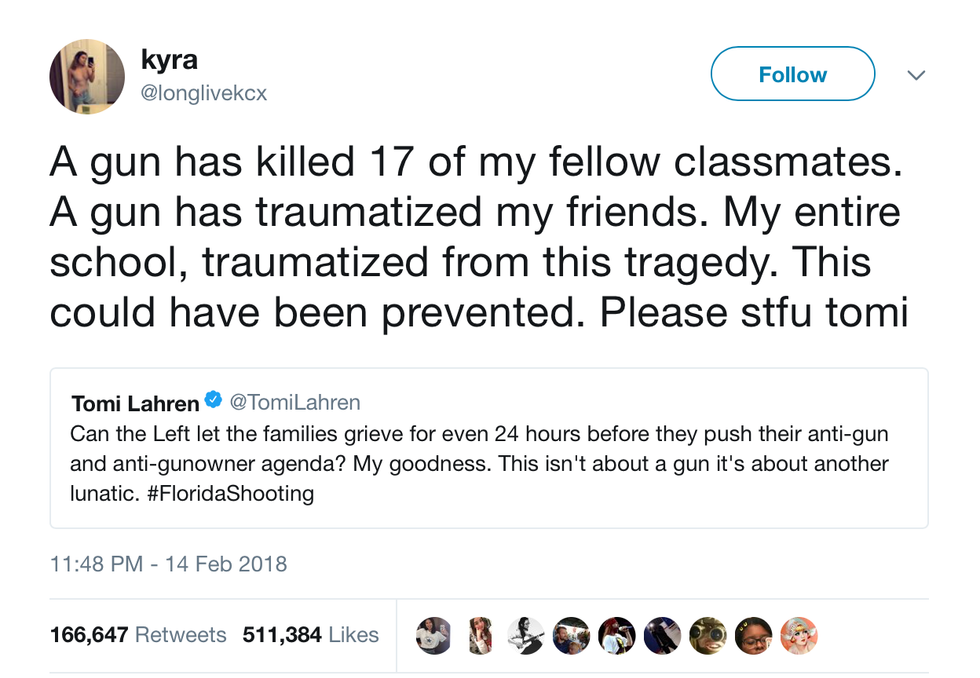 After the Parkland school shooting in Florida on February 14, there was an outcry on Twitter of those sharing their thoughts—people voicing their opinions on gun-regulations, those offering their "prayers and condolences," and even students who witnessed everything firsthand documenting their experience.