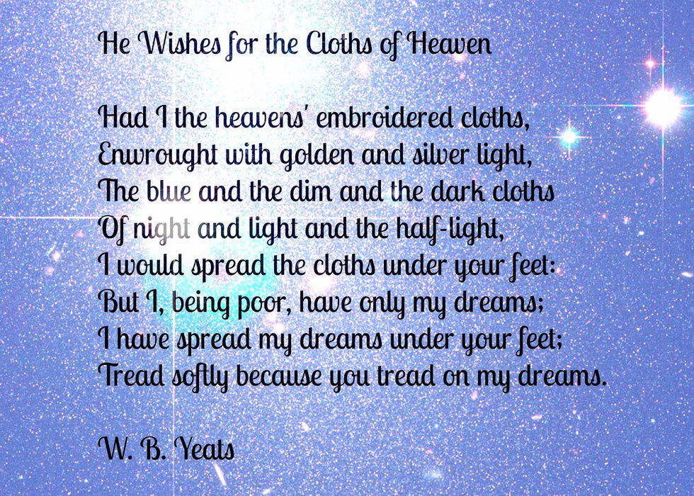 I want to include one of my favorite poems in the history of the universe. I know a lot of people don't like poetry because they don't know how to unfold everything, but this one's quick and simple. When I read it, it fills a small gap in my heart that I didn't know I had.