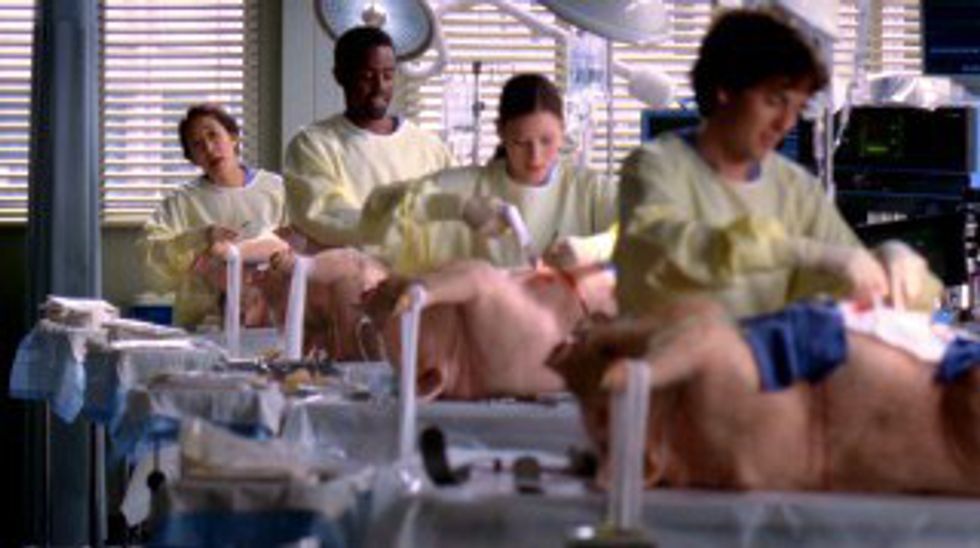 Hunt did not make a good first impression, either. When he arrives on his first day, he stabs a bunch of live pigs and makes the interns and residents keep them alive. I get what the writers were doing with the storyline, but it doesn't mean I like it. I could tell it was not going to be a good relationship.