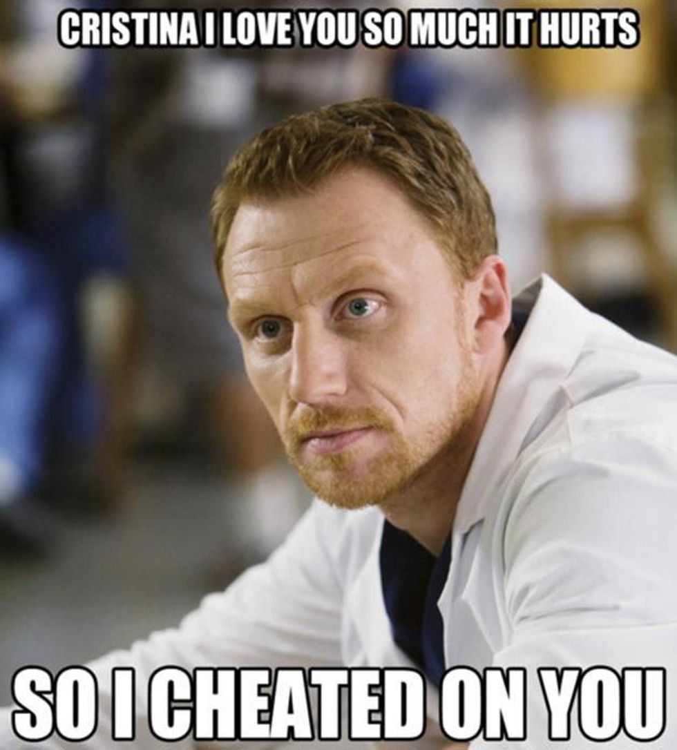 Owen and Cristina basically have an extremely toxic relationship and fight constantly. During one of these fights, Owen cheats on Cristina. I've been cheated on multiple times, and this is when my distaste for Owen got personal. You don't cheat on Cristina Yang and get away with it.