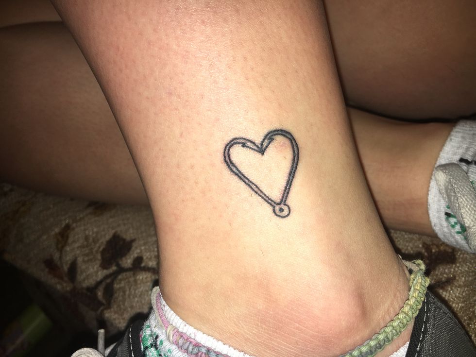 The tattoo pictured above is shared by seven different family members. This small gem has a meaning larger than one may think. It symbolizes two grandparents who have finally met each other again in a world beyond our own, who are now at peace together. They decided to all go and honor the couple who loved to fish together with these hooks in a shape of a heart. Many times siblings, best friends, or family members get tattoos together to symbolize the bond they share or loved ones they have lost together.