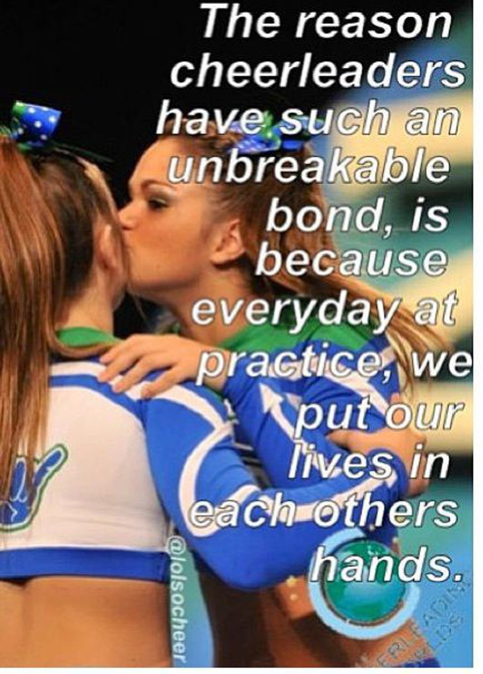 During cheer camp you become really close with your team, you do everything together. You go to breakfast, camp, lunch, camp, dinner and then to hangout and do something so basically you are with each other twenty-four seven. This helps immensely though with getting your team to become a family. Camp brings everyone together since you are all in the same boat with having fun, motivating and supporting one another through it even when were all getting tired, sweaty, sore, and beat up. It helps us push through those rough times by being there for one another and camp truly shows just how important it is to have each other’s support. Without each other we could not be a cheer team, we need each other to make it happen.