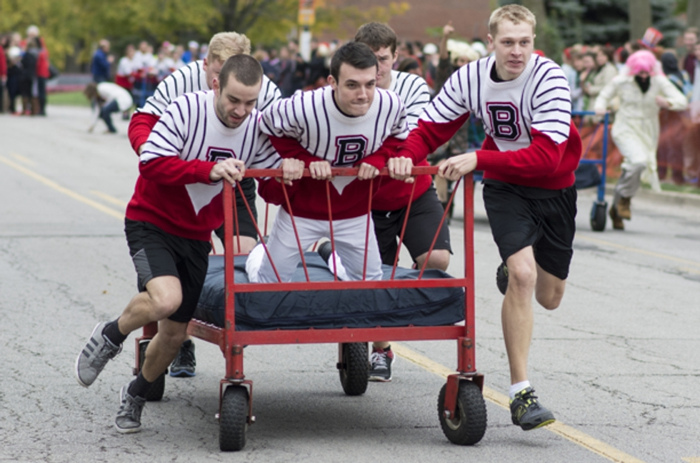 Normally, the school throws together an array of events for students during the whole week leading up to the homecoming football game. They include free food and sometimes a free t-shirt, so you can expect a big crowd there. At Ball State specifically, the most popular event is called air jam. Multiple organizations sing and perform songs by lip singing, it brings in a huge crowd, and it is very entertaining. There's also other events during the school day, my personal favorite being the bed races. Yes, you read that right, people actually push their friends on beds down the road, and yes, there is a lot of road rash involved.