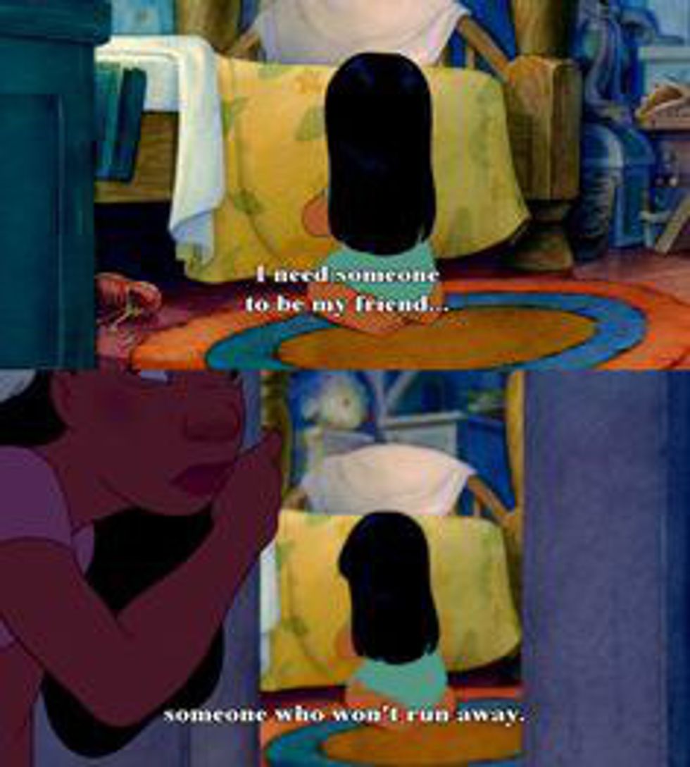 A lot of movies and TV shows make their characters way too perfect, and it can make the show hard to relate to and give people unrealistic expectations. In Lilo and Stitch, the sisters get into a screaming match in the first half hour of the movie. Relatable.