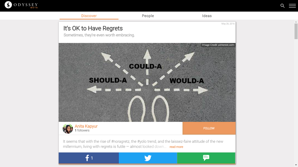 One of my personal favorites of the new website is the ability to comment on an article! When I first wandered onto Odyssey near the beginning of this past school year, I was surprised they didn't have some way to comment on an article. Now, through the power vested in me by Facebook Comments, I can leave my opinion! (Just please don't lose your head when you do it. That leads to bad things.) Commenting on an article allows us, as readers and authors, to continue the conversation after the last sentence and not feel like that conversation is a little one-sided.